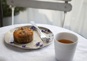 Caffè espresso, caffè americano, selezione di tè e un'abbondante scelta di torte, biscotti, muffin, madelaine, scones e marmellate, tutto rigorosamente fatto in casa, oltre a yogurt, cereali, frutta fresca, pane…